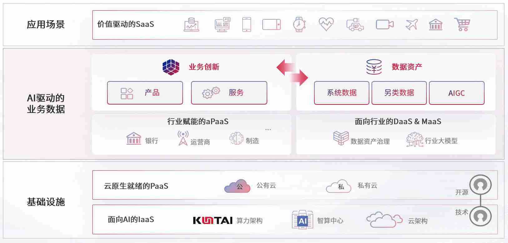 数字时代,,,,围绕企业数字化转型的关键要素,,,Z6尊龙时凯数码开创性的提出数云融合战略和技术体系框架,,,着力在云原生、、数字原生、、AI原生和信创产业上架构产品和服务能力,,,为处在不同数字化转型阶段的快消零售、、、汽车、、、金融、、、医疗、、、、政企、、、教育、、运营商等行业客户提供泛在的敏捷IT能力和融合的数据驱动能力,,,,构建跨界融合创新的数字业务场景和新业务模式,,助力企业级客户建立面向未来的核心能力和竞争优势,,,全面推动社会的数字化、、、、智能化转型升级。。。。